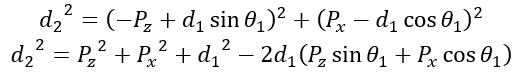 theata2_2=pi-asin(((d2)^2-(d1)^2+(px)^2+(pz)^2)/2/d2/sqrt((px)^2+(pz)^2))-atan2(px,pz);