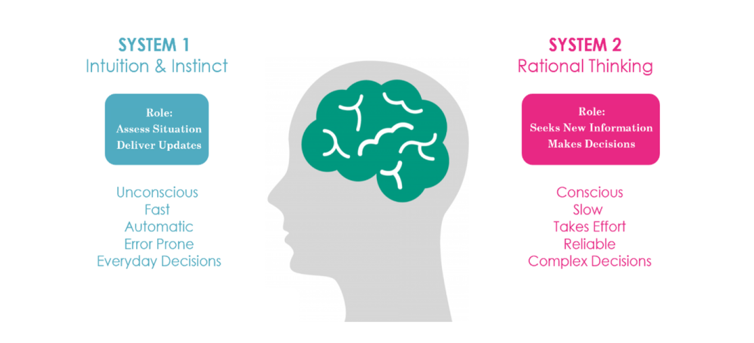 图注:系统1和系统2思维是由诺贝尔经济学奖得主丹尼尔·卡尼曼提出的认知模型,描述了人类思考的两种不同模式:系统1是快速、自动的直觉思维,而系统2是缓慢、理性的深思熟虑思维