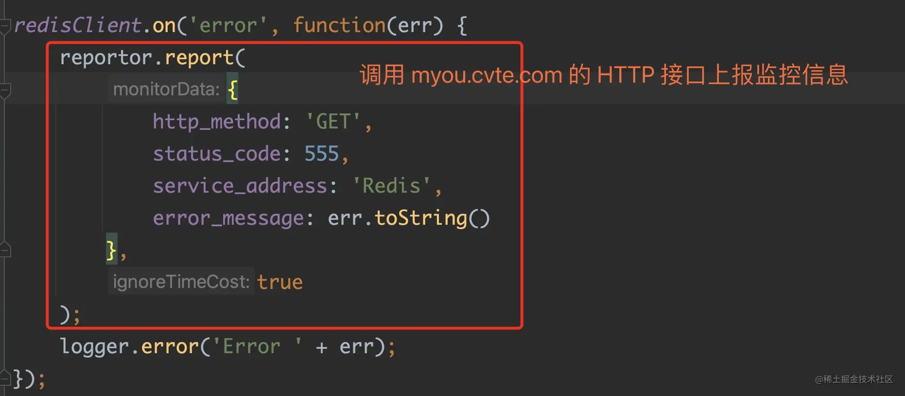 我们自己封装的 redis 库在失败时会把错误信息尝试上报给 myou.cvte.com 相关的接口。