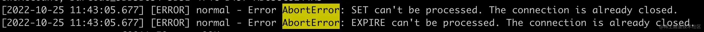 很不幸,这两次 Redis 操作因为配置的问题都失败了,通过日志可以确认。