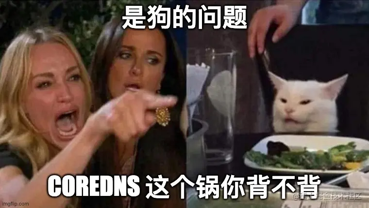 如果这个域名的 DNS 请求有发起,但是结果不对或者没有返回,那可以去找 coredns 的问题。但是这里情况是 DNS 请求都没有发起,那还不能甩锅到 coredns 那里。