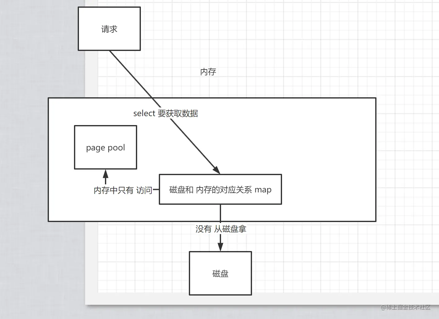 这就是第一想法,每次操作 都是 从磁盘拿到内存,然后存个对应关系,这里有几个问题