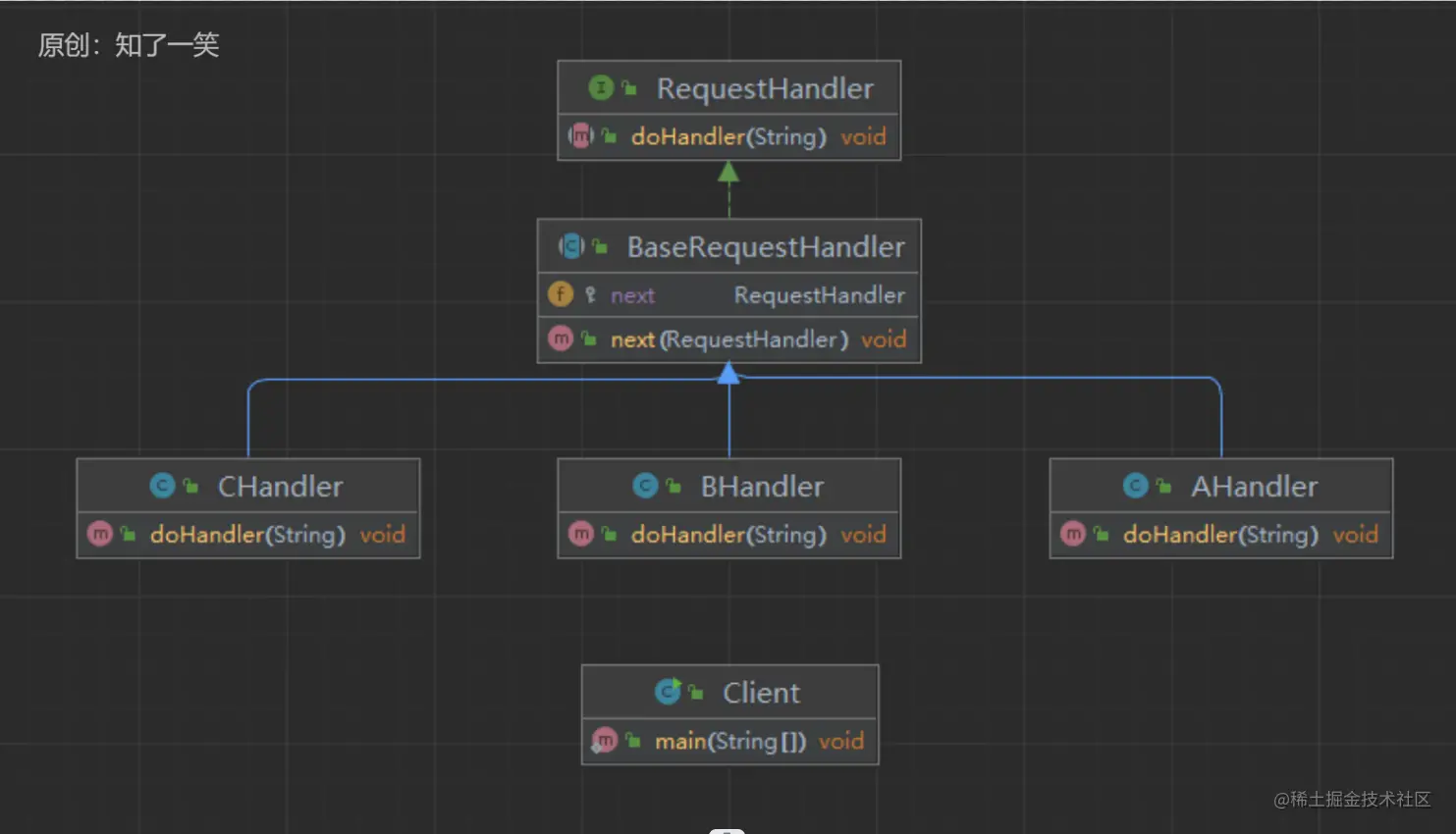 当然还有具体的处理类B、C等等,这里不展开赘述。 使用类Client