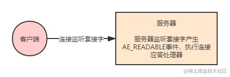 当Redis服务器进行初始化的时候,程序会将这个连接应答处理器和服务器监听套接字的AE_READABLE时间关联起来,当有客户端用sys/socket.h/connect函数连接服务器监听套接字的时候,套接字就会产生AE_READABLE事件,引发连接应答处理器执行,并执行相应的套接字应答操作。
