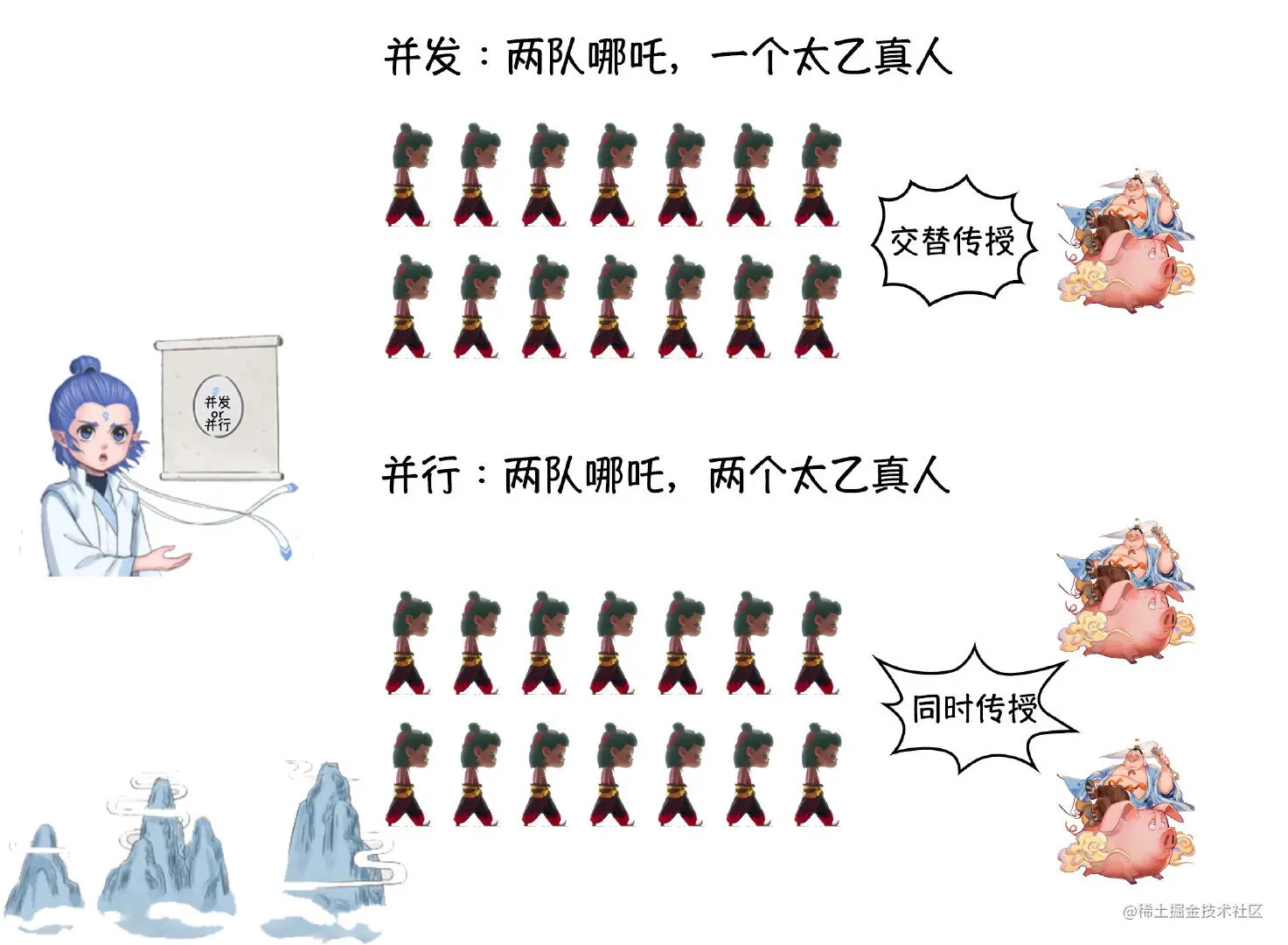 多线程有时候确实比单线程快,但也有很多时候没有单线程那么快。首先用一张3岁小孩都能看懂的图解释并发与并行的区别: