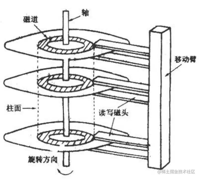可以看到,无论是磁头的移动还是磁盘的转动,本质上其实都是机械运动,这也是为什么这种硬盘被称为机械硬盘,而机械运动的效率就是磁盘读写的瓶颈。