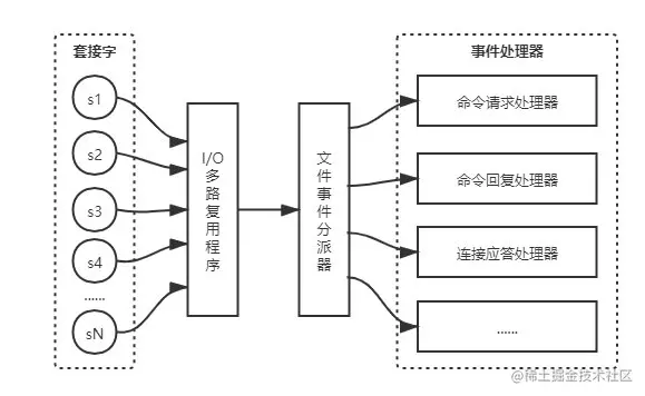 文件事件是对套接字操作的抽象,每当一个套接字准备好执行连接应答、写入、读取、关闭等操作时,就会产生一个文件事件。因为一个服务器通常会连接多个套接字,所以多个文件事件有可能会并发地出现。I/O 多路复用程序负责监听多个套接字,并向文件事件分派器传送那些产生了事件的套接字。