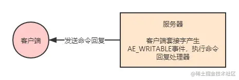 当服务器有命令回复需要传送给客户端的时候,服务器会将客户端套接字的AE_WRITABLE事件和命令回复处理器关联起来,当客户端准备好接收服务器传回的命令回复时,就会产生AE_WRITABLE事件,引发命令回复处理器执行,并执行相应的套接字写入操作。
