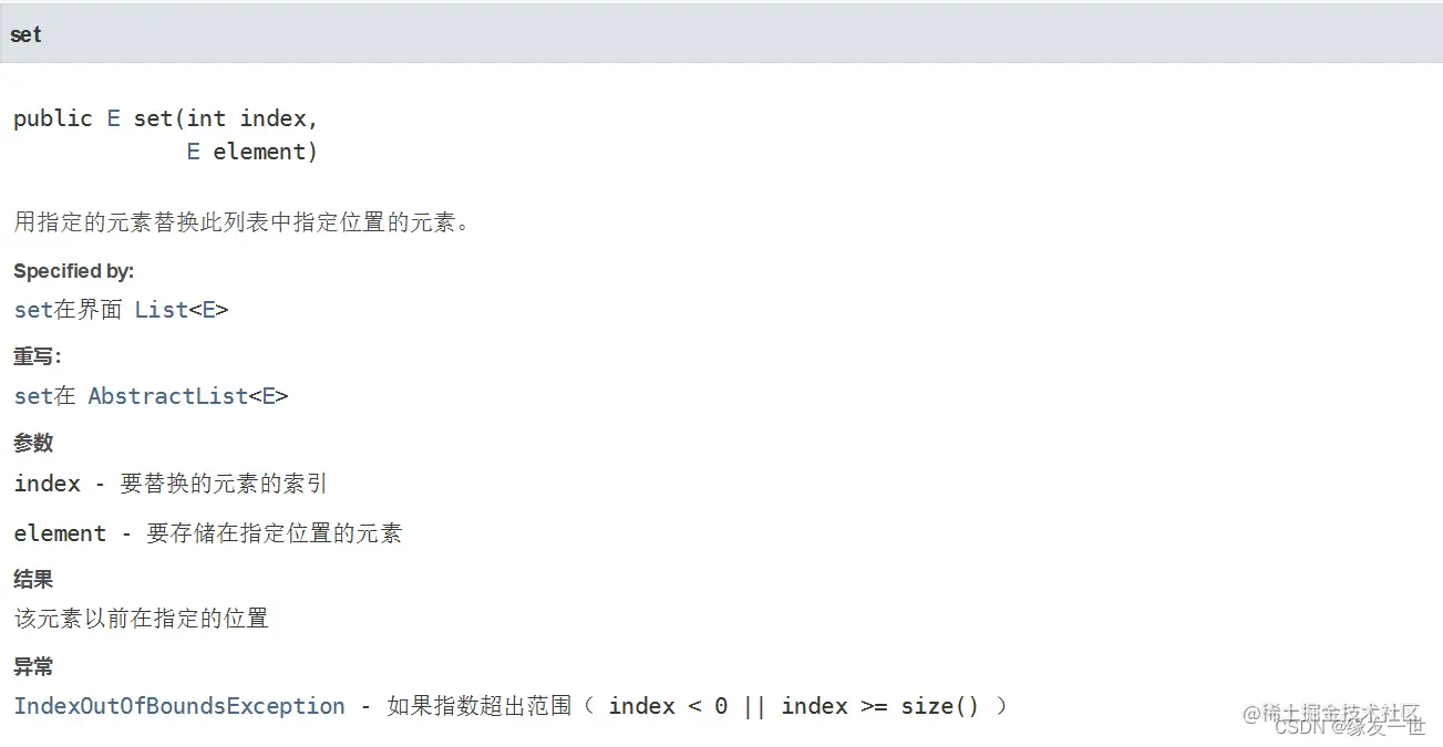 | Object set(int index,Object element) | 修改指定位置的元索 |