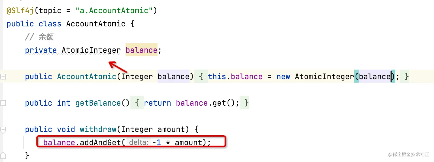 AtomicInteger作为余额的类型 - 取钱逻辑直接调用