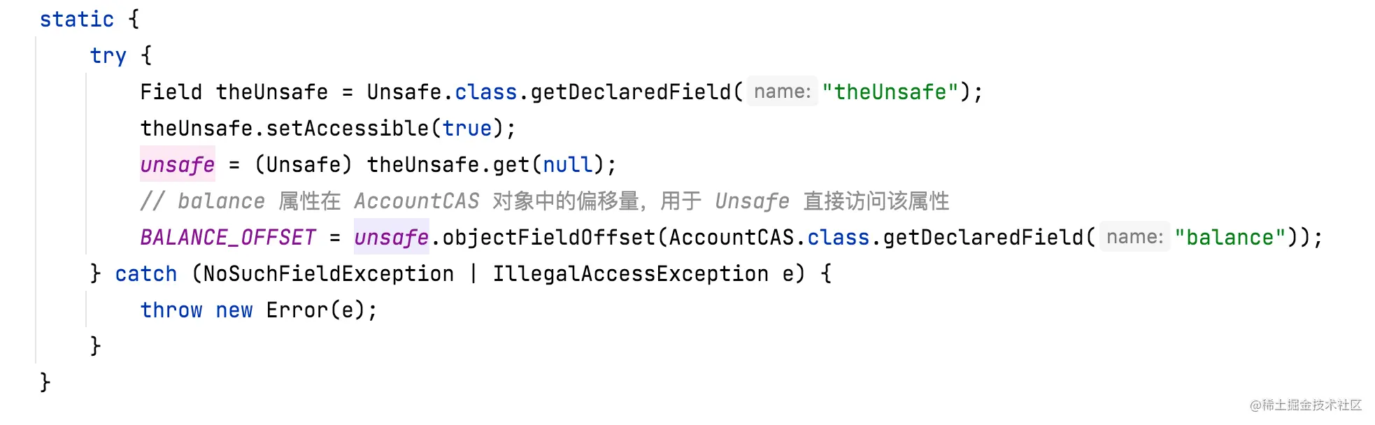 BALANCE_OFFSET = unsafe.objectFieldOffset(AccountCAS.class.getDeclaredField("balance"));