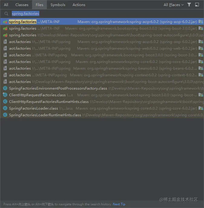spring.factories其实是SpringBoot提供的SPI机制,底层实现是基于SpringFactoriesLoader检索ClassLoader中所有jar(包括ClassPath下的所有模块)引入的META-INF/spring.factories文件,基于文件中的接口(或者注解)加载对应的实现类并且注册到IOC容器。这种方式对于@ComponentScan不能扫描到的并且想自动注册到IOC容器的使用场景十分合适,基本上绝大多数第三方组件甚至部分spring-projects中编写的组件都是使用这种方案。
