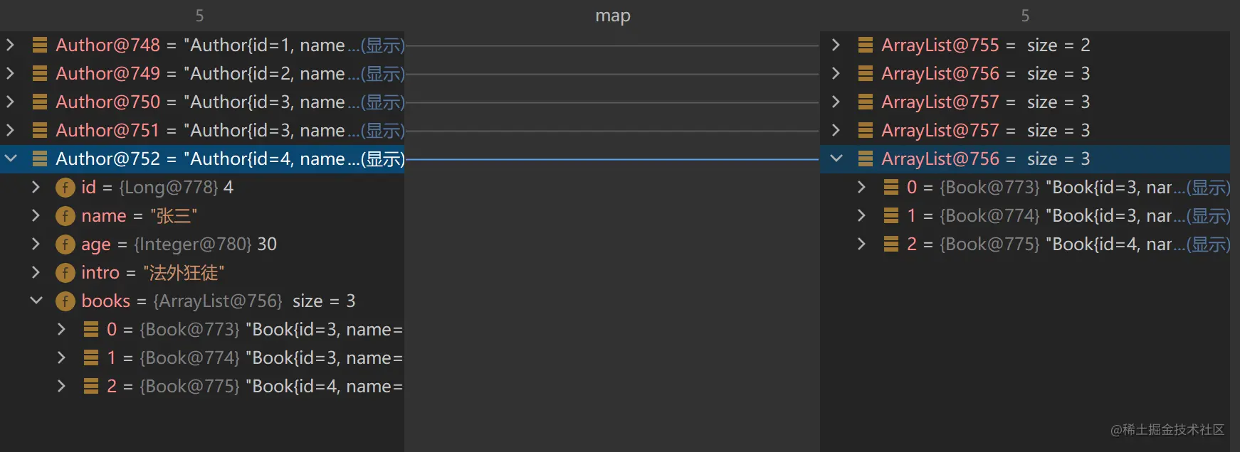 .collect(Collectors.toMap(author -> author.getName(), author -> author.getBooks()));