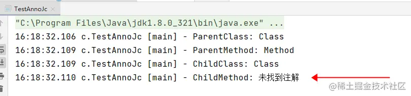 log.info("ChildClass: {}", getAnnoValue(child.getClass().getAnnotation(TestAnnotation.class)));