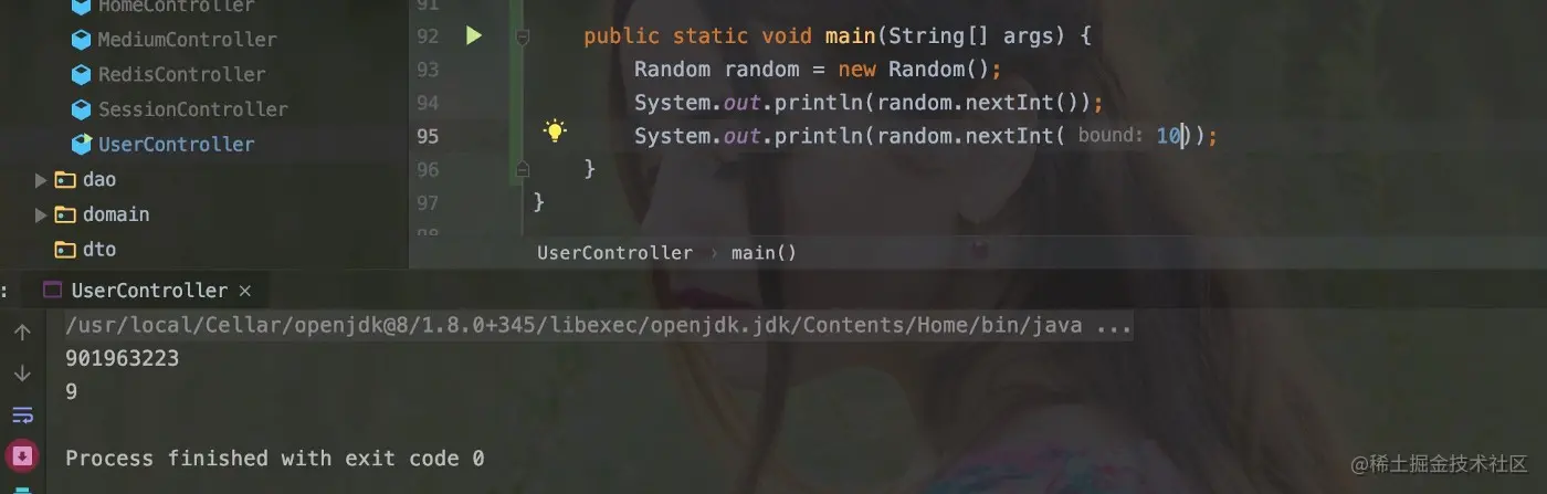 Random中有很多方法。 这里我们就分析比较常见的nextInt()和nextInt(int bound)方法。