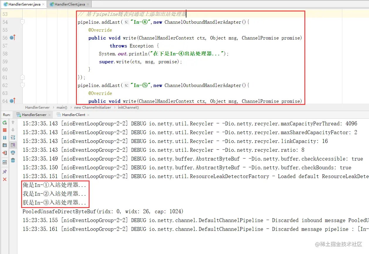 从结果中很容易看出这个案例中做了什么事情,其实无非就是利用Netty实现了简单的对端通信,实现的功能很简单,但对于未学习过Netty技术的小伙伴,在代码方面估计有些许懵,那么接下来简单的解释一下代码。