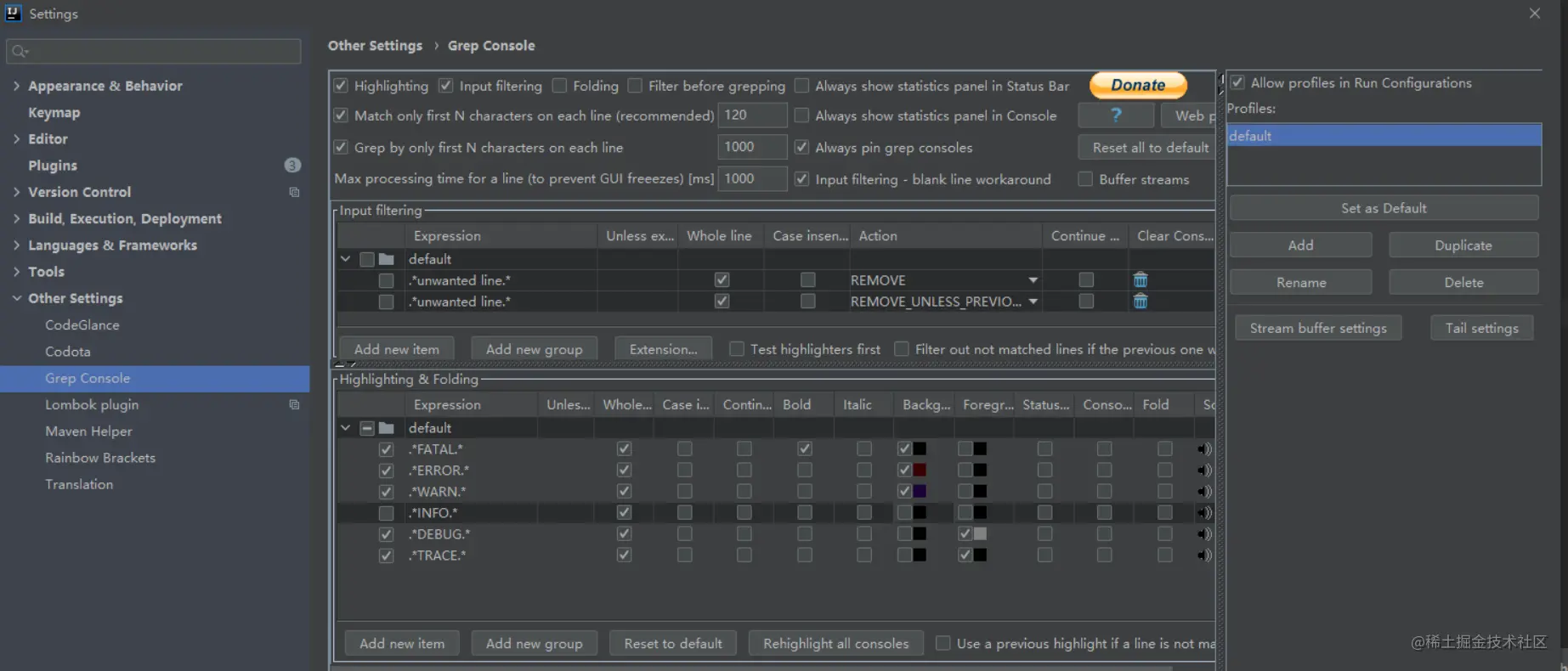 你是否发现打印日志都是乌漆麻黑的,很丑,有错误也提示的不够明显,容易遗漏。那么Grep Console这个插件可以很好的帮到你快速的找到错误日志,它可以设置不同级别log的字体颜色和背景色。