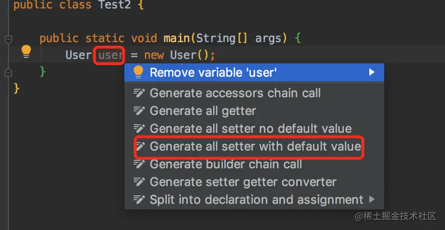 这个插件可以帮助您在一个类中生成所有具有默认值的 setter 而不会遗漏任何内容。