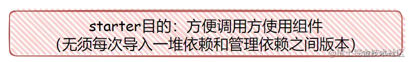 候选者:比如以前我们要用Mybatis框架,可能会引入各种的包才能使用。而starter就是做了一层封装,把相关要用到的jar都给包起来了,并且也写好了对应的版本。这我们使用的时候就不需要引入一堆jar包且管理版本类似的问题了。