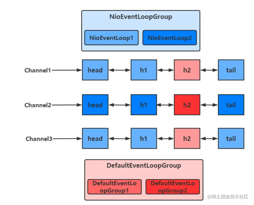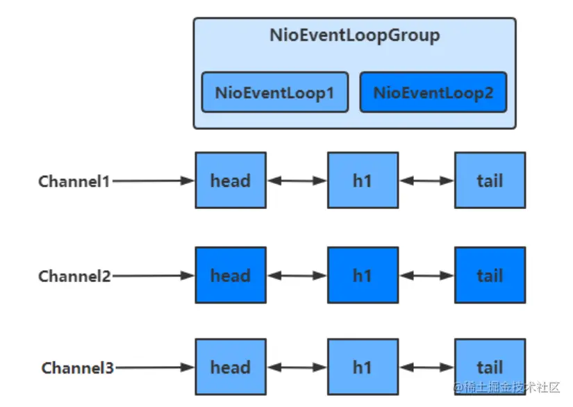 - eventLoop 按照 pipeline 顺序,依次按照 handler 的规划(代码)处理数据,可以为每个 handler 指定不同的 eventLoop