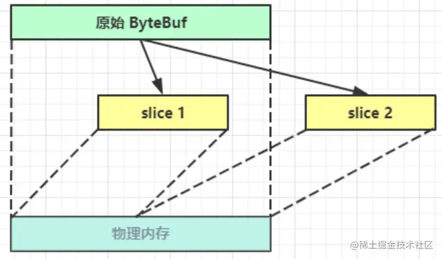ByteBuf 切片是【零拷贝】的体现之一,对原始 ByteBuf 进行切片成多个 ByteBuf,切片后的 ByteBuf 并没有发生内存复制,还是使用原始 ByteBuf 的内存,切片后的 ByteBuf 维护独立的 read,write 指针