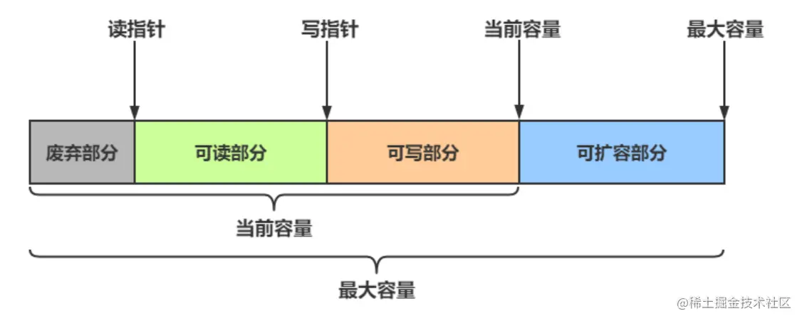 - 读写指针分离,不需要像 ByteBuffer 一样切换读写模式
