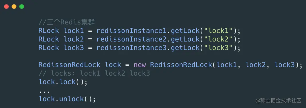 - 首先生成多个Redis集群的Rlock,并将其构造成RedLock。