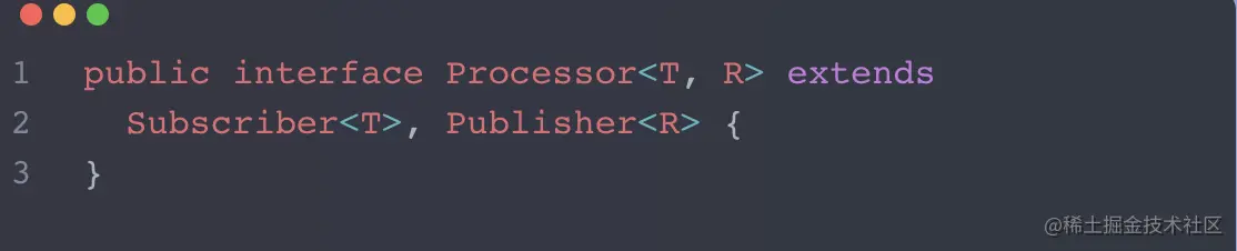 Processor:从类继承来看,它既是订阅者也是发布者,表示一个处理的阶段