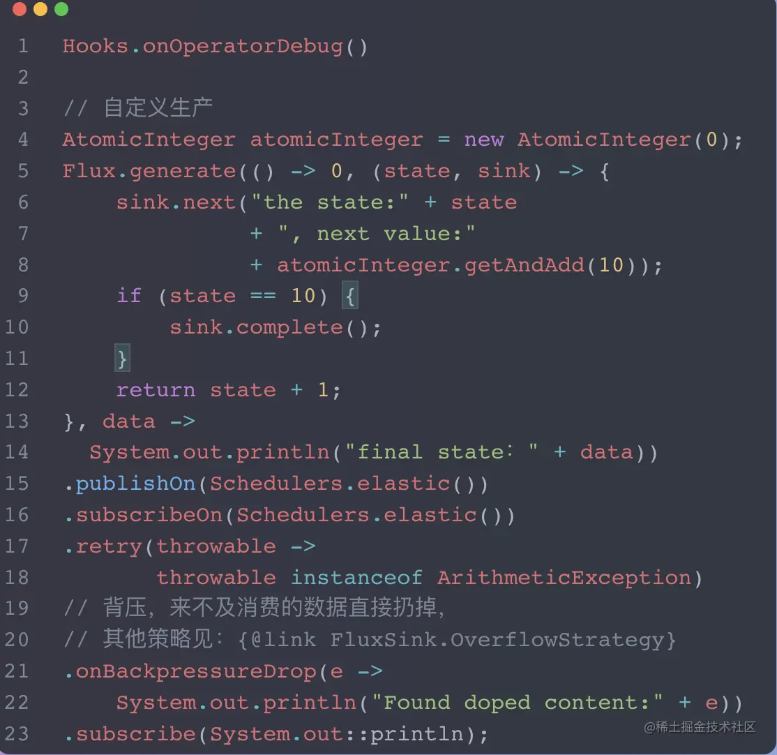 背压是响应式编程中核心特质,一般是出现在有 buffer 上限的系统中,当出现 Buffer 溢出的时候,也就是下游消费跟不上,数据就会在传输管道中积压,就会对上游形成压力,也就是产生了 Backpressure。