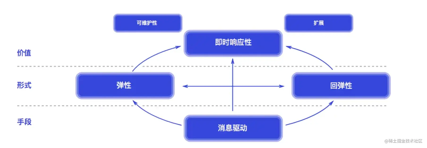 总结来说 就是 一个响应式的系统,需要具备在服务正常或者异常的情况下,都需要及时的对外部请求做出响应,响应可以是正常内容也可以是异常情况下的 fast throw,借助于消息驱动或者事件驱动来达到系统内部异步非阻塞的交互机制,这通常需要系统服务各个分层各个组件都是响应式的。