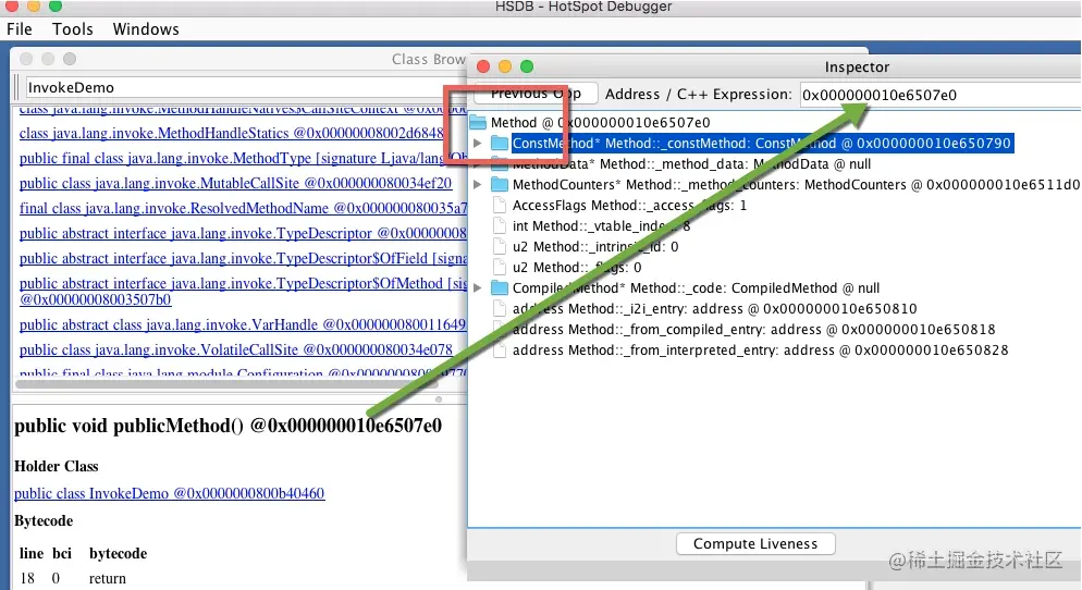 我们可以在Inspect视图看到方法所对应的内存信息,这确实是一个Method方法的表示。