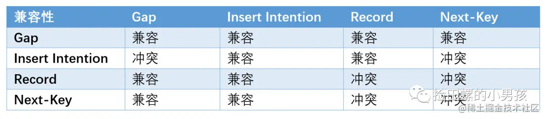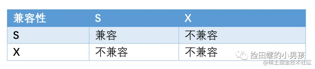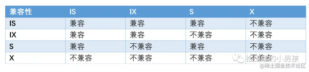 锁模式兼容矩阵(横向是已持有锁,纵向是正在请求的锁):