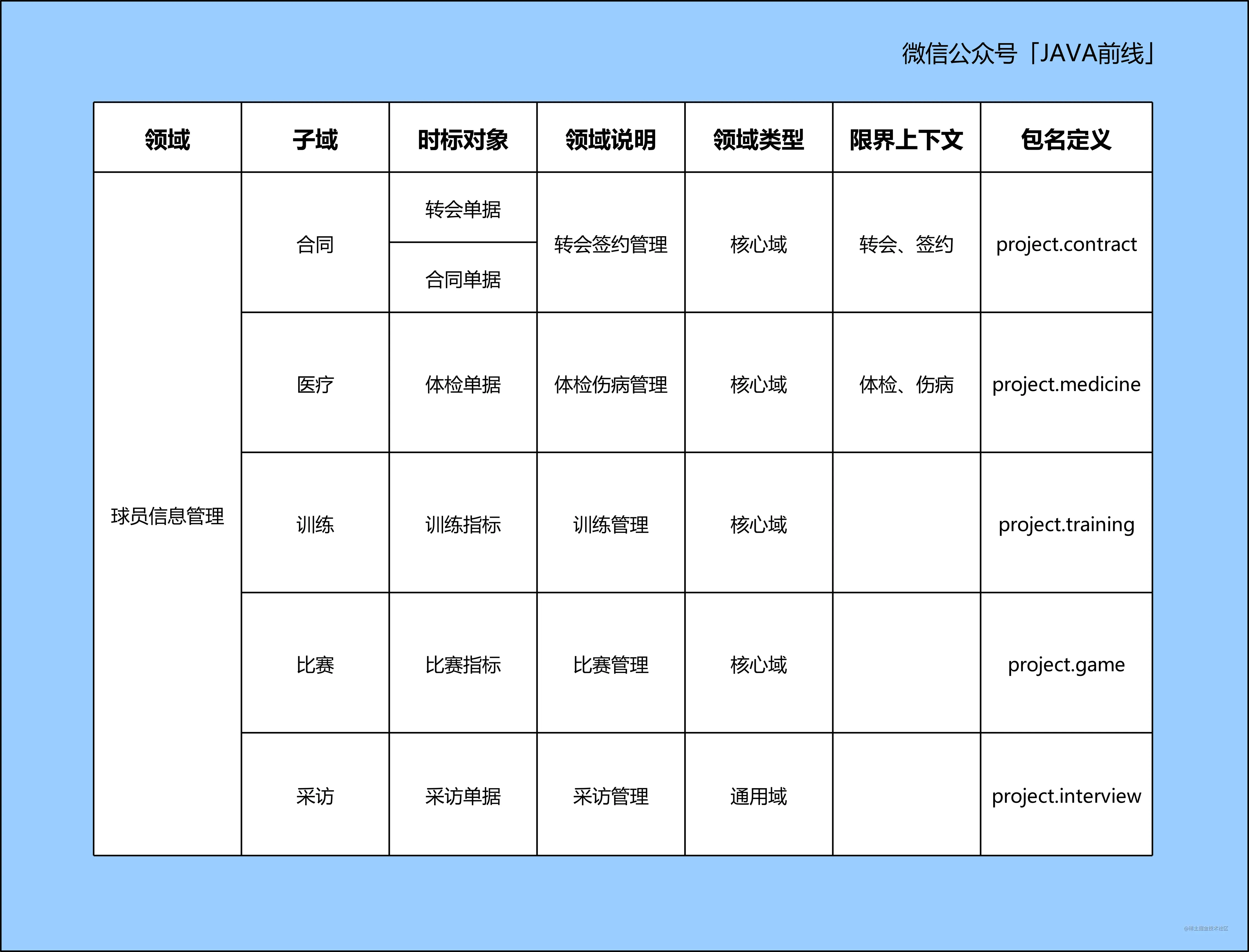 例如球员比赛受伤了,这是比赛子域事件,但是医疗和训练子域是需要感知的,那么比赛子域就发出一个事件,医疗和训练子域会订阅。球员比赛取得进球,这也是比赛子域事件,但是训练和合同子域也会关注这个事件,所以比赛子域也会发出一个比赛进球事件,训练和合同子域会订阅。