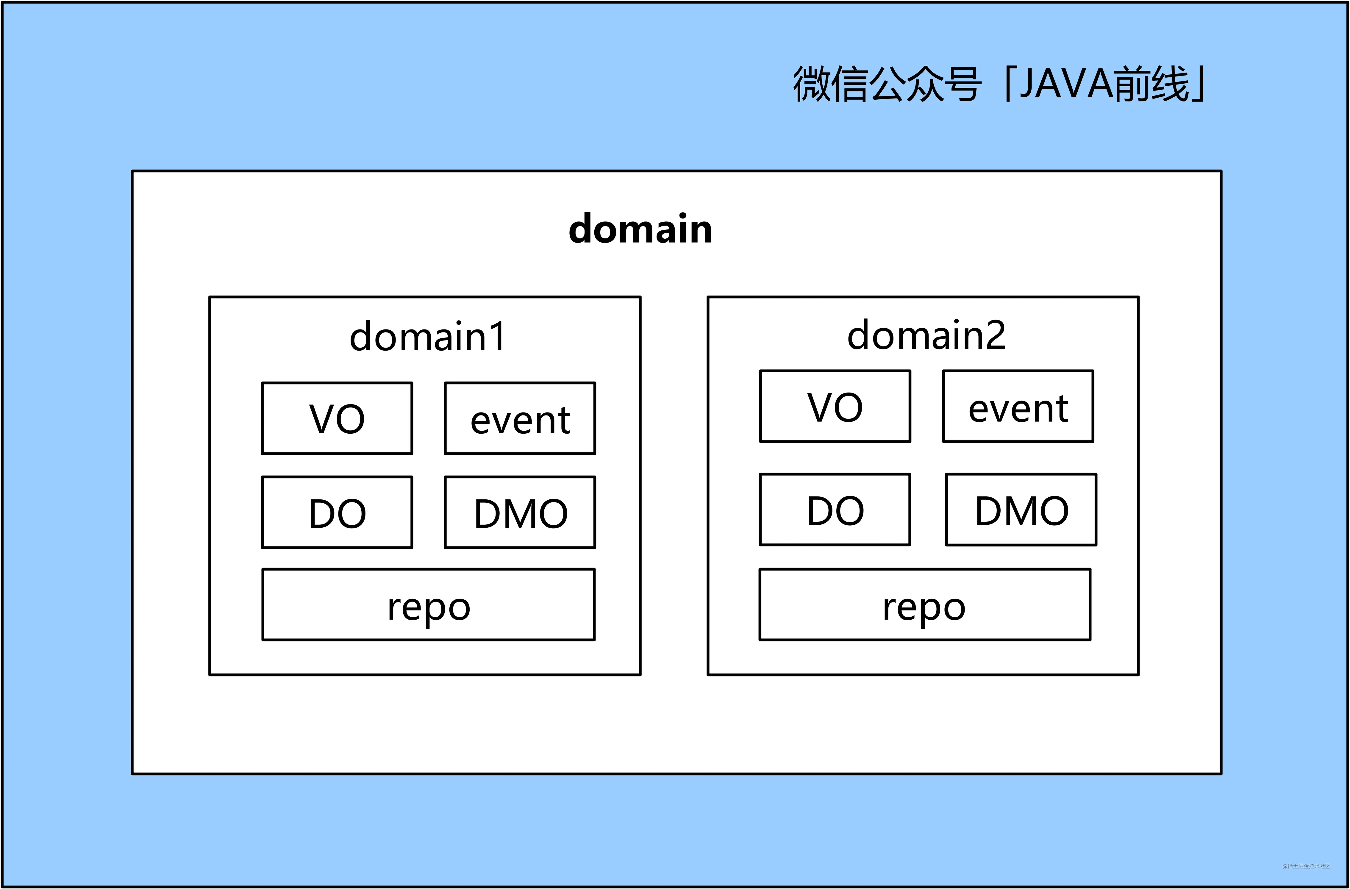 本文展开领域层进行分析。领域层核心是按照领域进行分包,并且提供DMO、VO、事件、DO和数据访问,领域内高内聚,领域间低耦合。