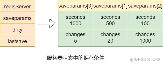 服务器程序会根据save选项所设置的保存条件,设置服务器状态redisServer结构的saveparams属性。