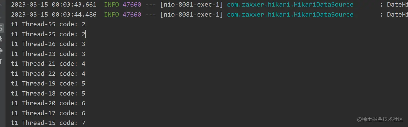 测试结果就会发现并发下出现了种种问题,会出现相同的code。