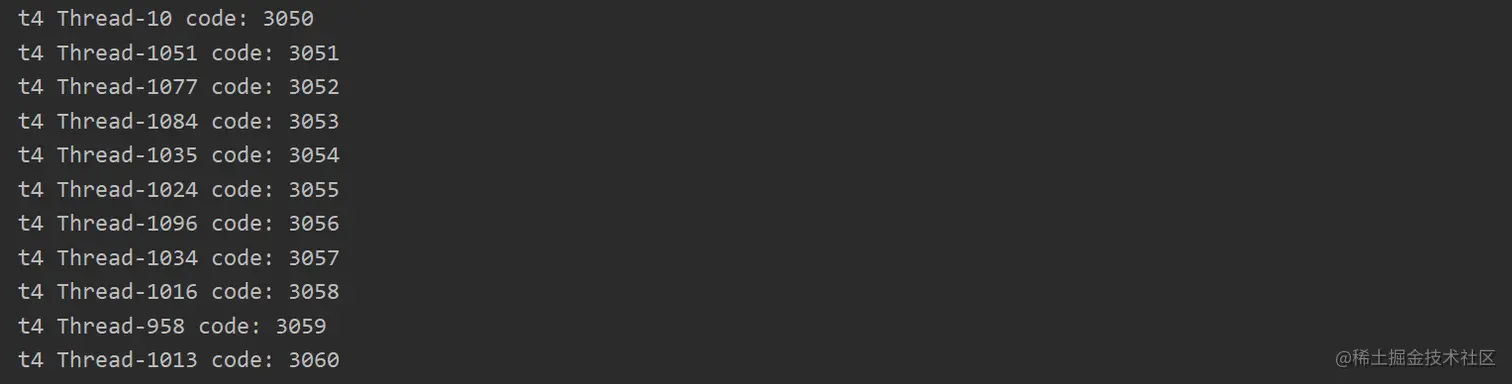 System.out.println("t4 " + Thread.currentThread().getName() + " code: " + taskCode);