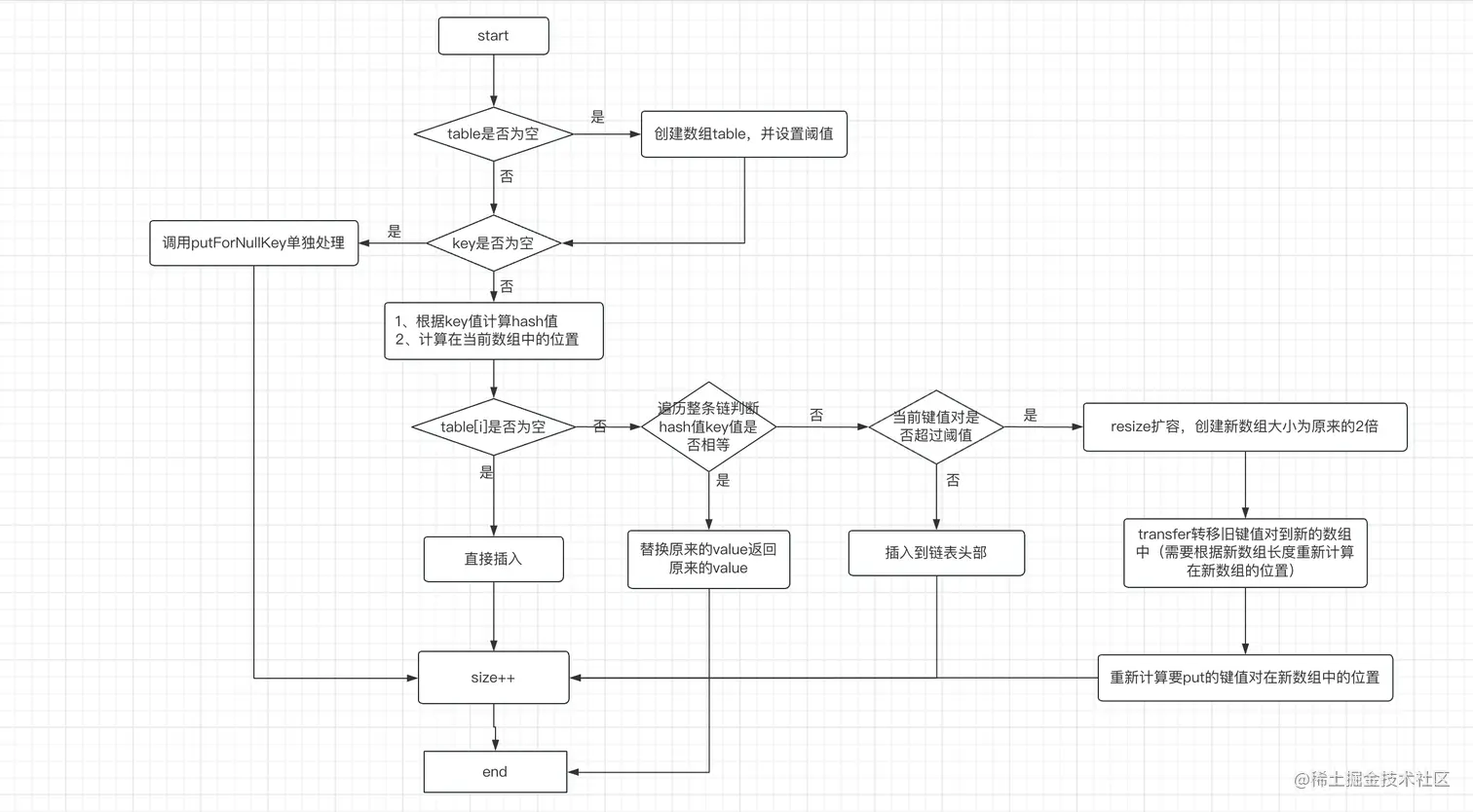 key为null,则调用putForNullKey方法添加该键值对,该方法单独处理; - 通过调用