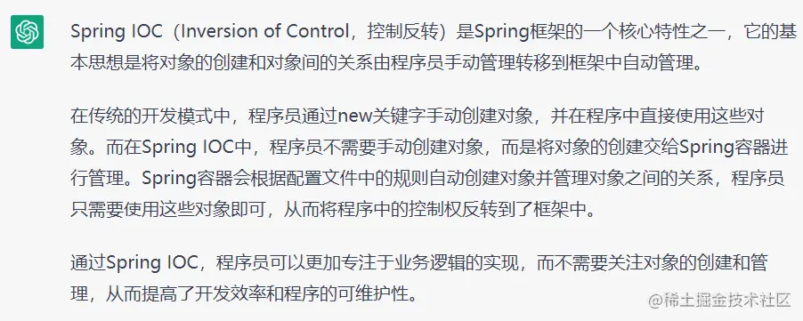 那么接下来,让我们使用 ChatGPT 并结合自己的理解来讲述一下 IOC 的相关内容。
