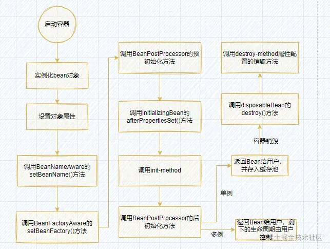 这里顺带提一下 Bean 的生命周期,如下图所示: