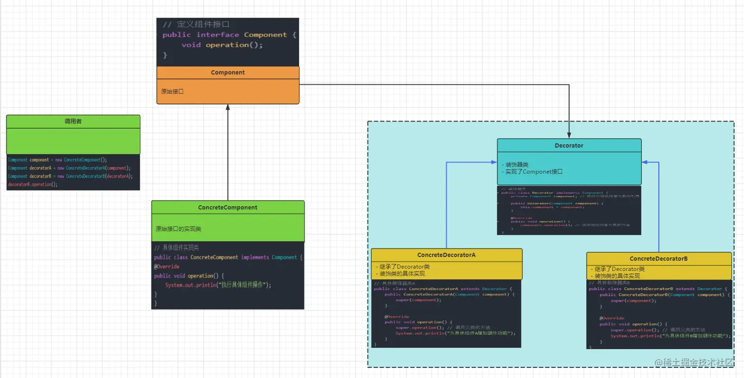 Component decoratorB = new ConcreteDecoratorB(decoratorA);