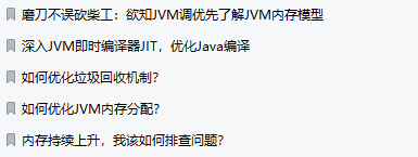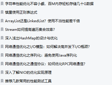 说到这,最近很多粉丝都跟我反馈说面试前都是觉得自己平时技术还行,背了八股文,完全够用了,没想到面试官不按套路出牌,直接上Java性能优化,并发底层相关面试题,如下所示(粉丝投稿收录总结):