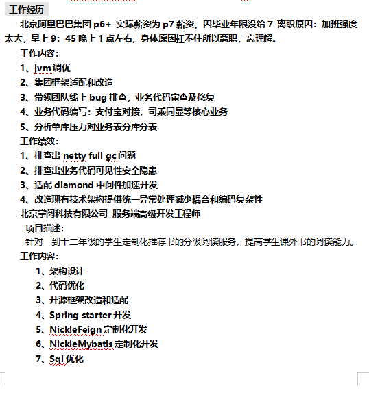 最后 文章到这里篇幅已经很长了,就不继续拉长篇幅影响大家阅读体验了,需要上文展示的阿里Java面试速成指南+Java简历模板+阿里七面面经的小伙伴点赞+转发,关注我后在【下方点击名片】即可获取~