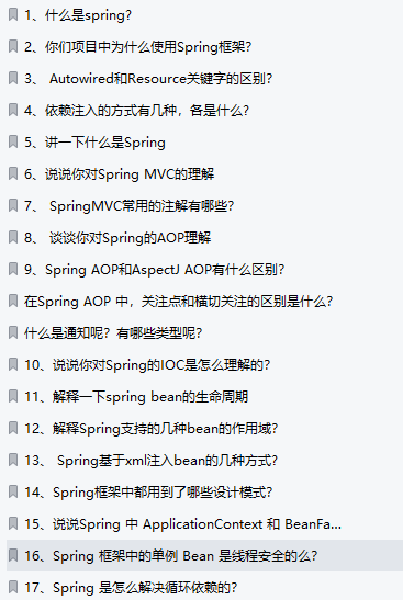 阿里Java面试速成指南(2023版) 这份面试指南从基础到高级足足渗透了23个技术栈,篇幅也达到了近300页,小编还额外整理了一份优秀同行的Java简历模板以及我一朋友面试阿里的面经,希望能对大家有所帮助,碍于篇幅限制,下面我就只展示资料的重点部分了,需要完整版的小伙伴可以点赞+转发+关注我后在【文尾点击名片】即可获取~