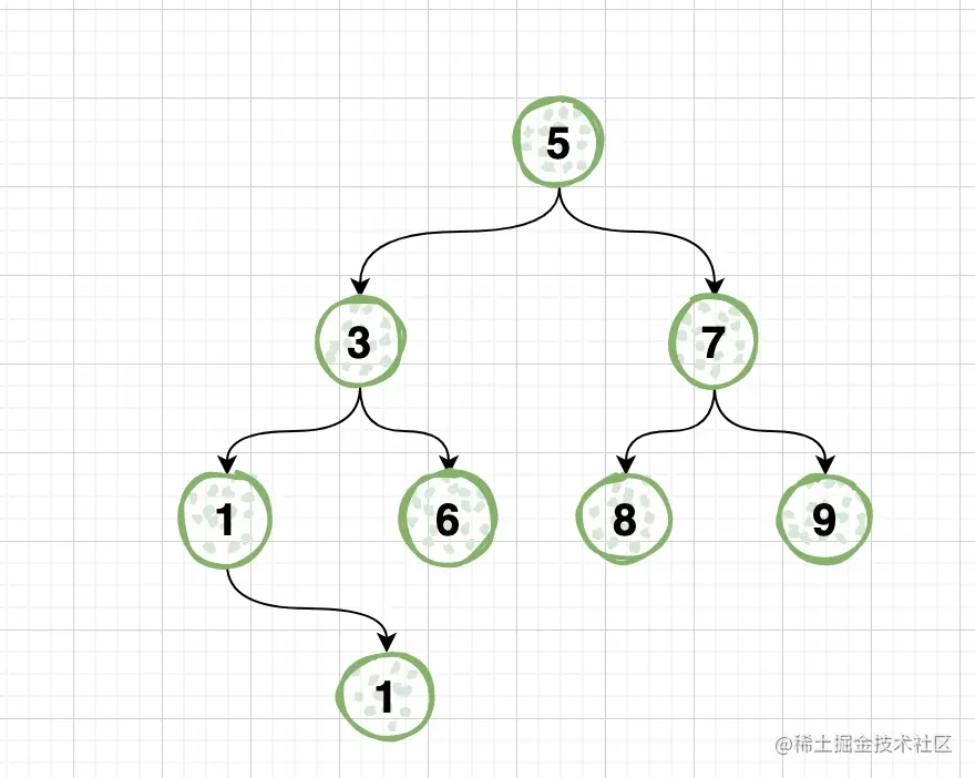 如下图中,节点8和节点9的公共祖先有节点7和节点5,节点7距离节点8和节点9最近,所以节点7为节点8和节点9的最低公共祖先。