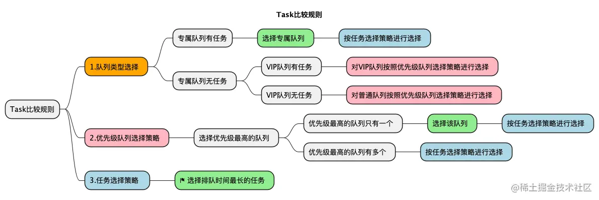 - 对非VIP队列中的任务按队列优先级进行排序,选择优先级最高的队列