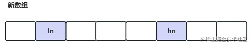 在迁移之前,我们要掌握一个知识,由于我们的数组是 2 倍扩容,所以原始数据的数据一定会落在新数组的 2 和 N + 2 的位置