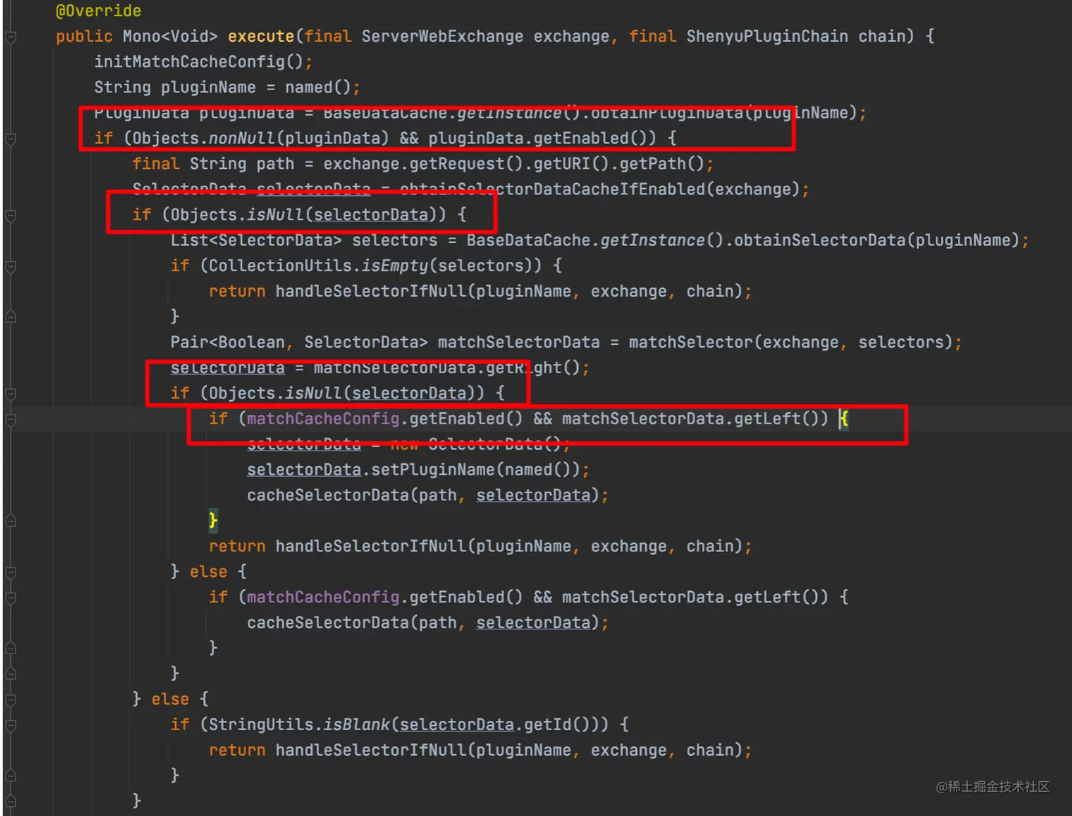 写这篇文章的契机是在研读Apache ShenYu项目时,看到了很大一坨的if else语句,如下: