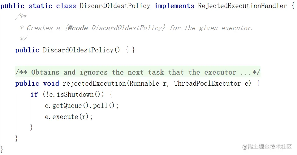 - DiscardOldestPolicy:丢弃等待队列中最旧的任务,并执行当前任务