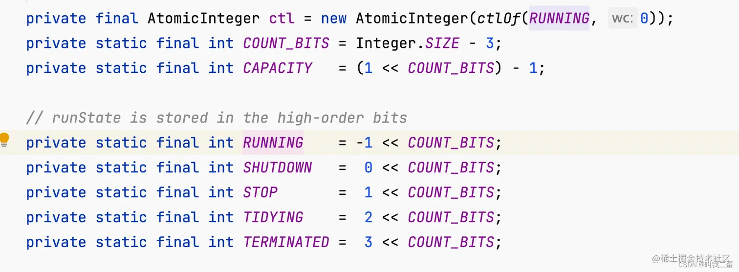 线程池的状态是在ctl属性中记录的。本质就是int类型